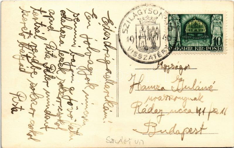 Szilágysomlyó, Simleu Silvaniei; Főgimnázium / grammar school. Foto Burkos photo + "1940 Szilágysomlyó visszatért" So. Stpl.