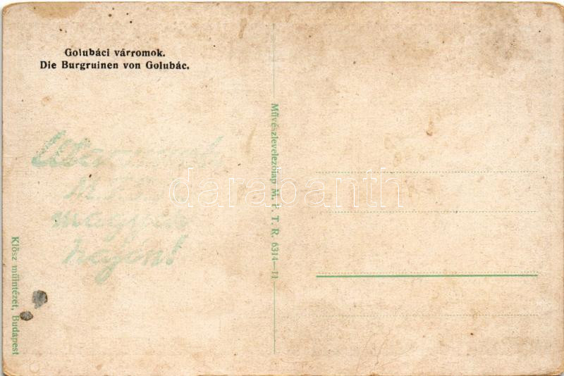 https://www.darabanth.com/en/457-Online-auction/457.0/Postcards/Vojvodina~1000010/Galamboc-Golubac-varromok-Muveszlevelezolap-MFTR-6314-11-castle-ruins-fl~II3057110