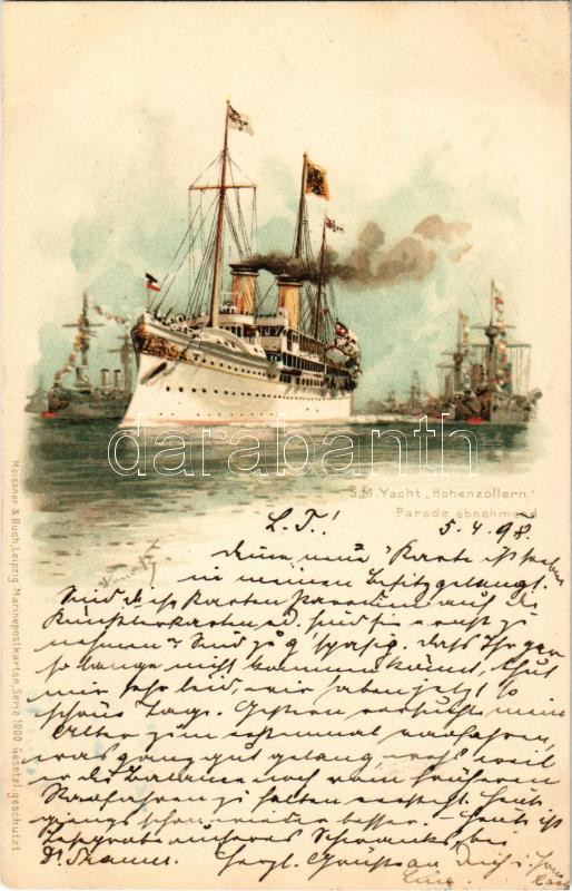https://www.darabanth.com/en/457-Online-auction/457.0/Postcards/Warships~1000024/1898-Vorlaufer-Kaiserliche-Marine-SM-Yacht-Hohenzollern-Parade-abnehmend-Meissner-Buch-Mar~II3008912