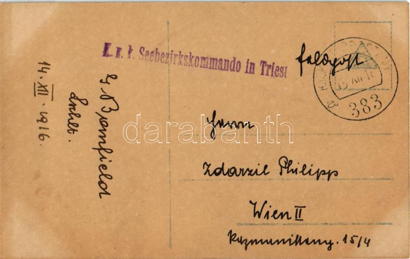 Description: 1916 K.u.k. Kriegsmarine Linienschiffsleutnant Banfield, erfolgreicher Flieger / Gottfried Freiherr von Banfield. C. Pietzner + "K.u.k. Seebezirkskommando in Triest"
