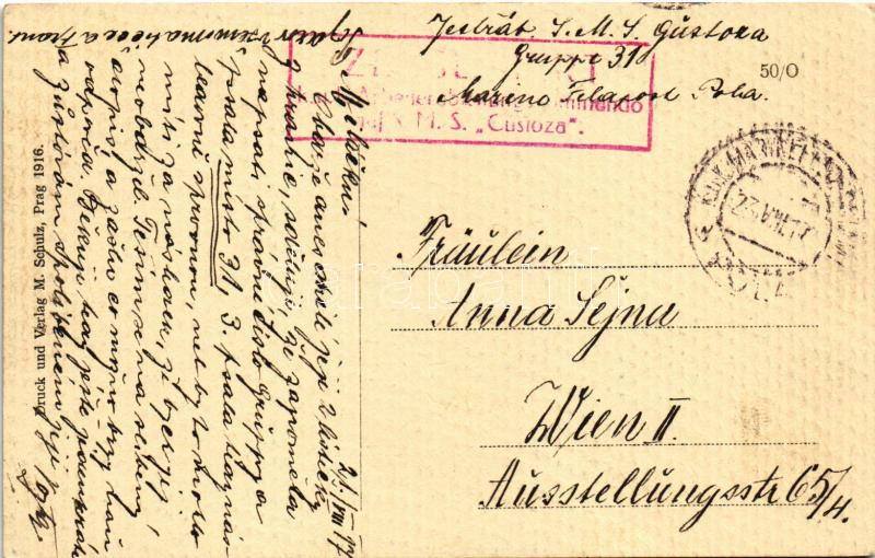 1917 Osztrák-Magyar Haditengerészet rombolók / K.u.K. Kriegsmarine Auslaufen der Eskadre / Austro-Hungarian Navy torpedo destroyer. M. Schulz 1916. + "ZENSURIERT k.u.k. S.M.S. "Custoza"