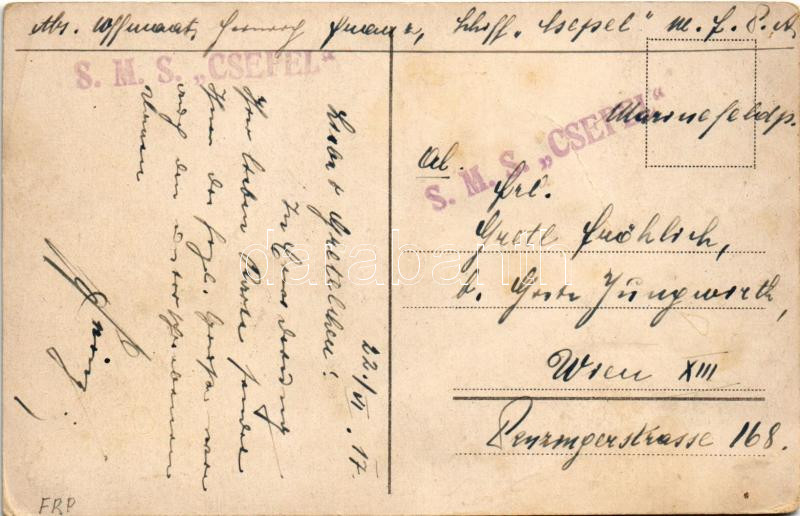 1917 SMS PRINZ EUGEN Osztrák-Magyar Haditengerészet pre-dreadnought csatahajója / K.u.K. Kriegsmarine Linienschiffe / Austro-Hungarian Navy ironclad warship + "S.M.S. CSEPEL" (gyűrődés / crease)