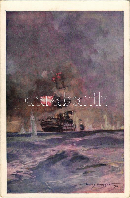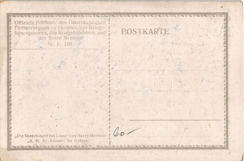 Description: Die Seeschlacht bei Lissa. SMS Kaiser (Linienschiff) im Gefecht. K.u.K. Kriegsmarine. Offizielle Karte für Rotes Kreuz. Kriegsfürsorgeamt Kriegshilfsbüro Nr. F. 110. / WWI Austro-Hungarian Navy, SMS Kaiser ship of the line in the Battle of Lissa s: Harry Heusser