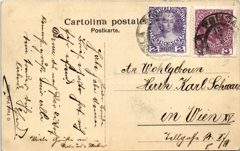 Description: S. M. Torpedoboots-Division in voller Fahrt: Torpedoboot Krokodil, Streiter, Ulan. K.u.K. Kriegsmarine / Austro-Hungarian Navy torpedo boats, G. Fano Pola 1908.