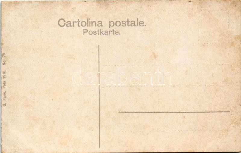 Description: SMS Panther osztrák-magyar torpedócirkáló este / K.u.K. Kriegsmarine / Austro-Hungarian Navy SMS Panther, torpedo cruiser at night, navy flag. G. Fano No. 75. (fl)