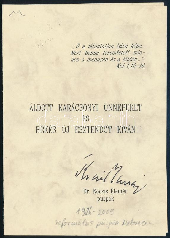 https://www.darabanth.com/en/458-Online-auction/458.0/Art-and-other-collectibles/Autographs~1000023/Dr-Kocsis-Elemer-1926-2009-debreceni-puspok-alairasa-egy-nyithato-karacsonyi-udvozleten~II3068054