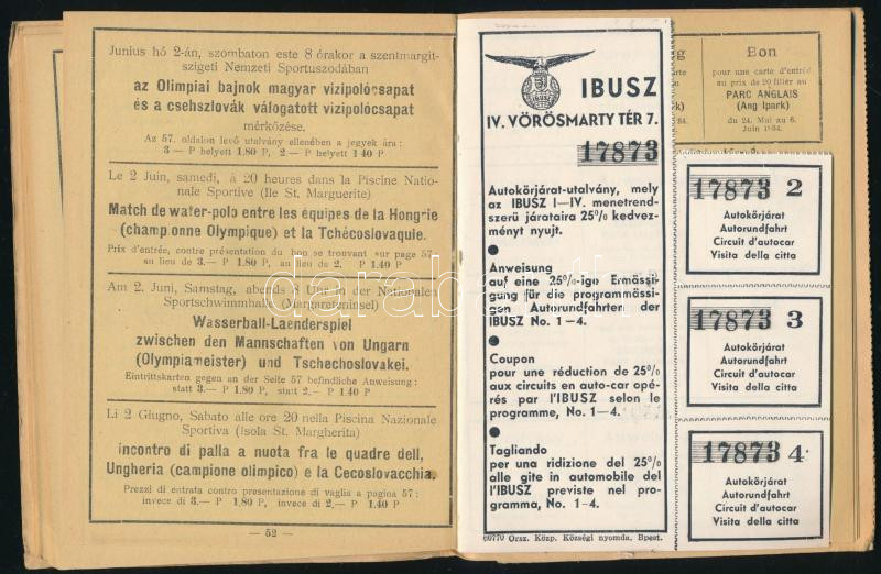 1934 Tornászvilágbajnokság Budapest résztvevő rlszére kiadott füzet információkkal, jegyekkel, stb 64p .