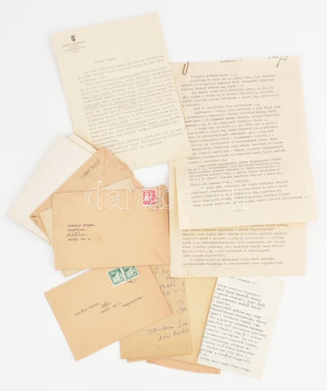 cca 1941-1968 Verbőczi (Verbőczy) Kálmán (1888-1967) volt honvéd ezredes, a Székely Hadosztály zászlóaljparancsnokának levelezése. Közte Lukács György (1885-1971) filozófus, egyetemi tanár, kommunista politikusnak írt levelei, amelyekben Lukácsra mint ,,volt harcostársára" hivatkozik. (Verbőczy 1919 első felében a Székely Hadosztály tagjaként részt vett az ország határainak megvédéséért folytatott harcokban, ezen cél érdekében a Tanácsköztársaság megalakulását követően csatlakozott a Vörös Hadsereghez is. Lukács ez év áprilisától a Tanácsköztársaság közügyi népbiztosa, majd május-júniusban a Vörös Hadsereg politikai biztosa volt.) Valamint egyéb saját kezű levelei és feljegyzései, illetve neki címzett levelek. Átnézésre érdemes!