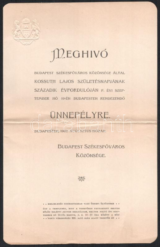 https://www.darabanth.com/en/458-Online-auction/458.0/Art-and-other-collectibles/Printed-Materials~1500039/1902-Kossuth-Lajos-szuletesenek-100-evfordulojara-tartott-budapesti-unnepsegek-meghivoja-plus~II3068556