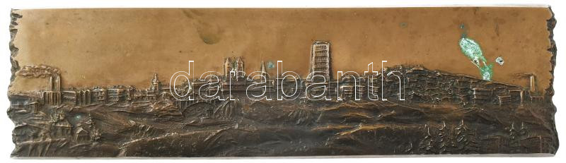 Városkép. Bronz dombormű, patinával, 38x10,5 cm