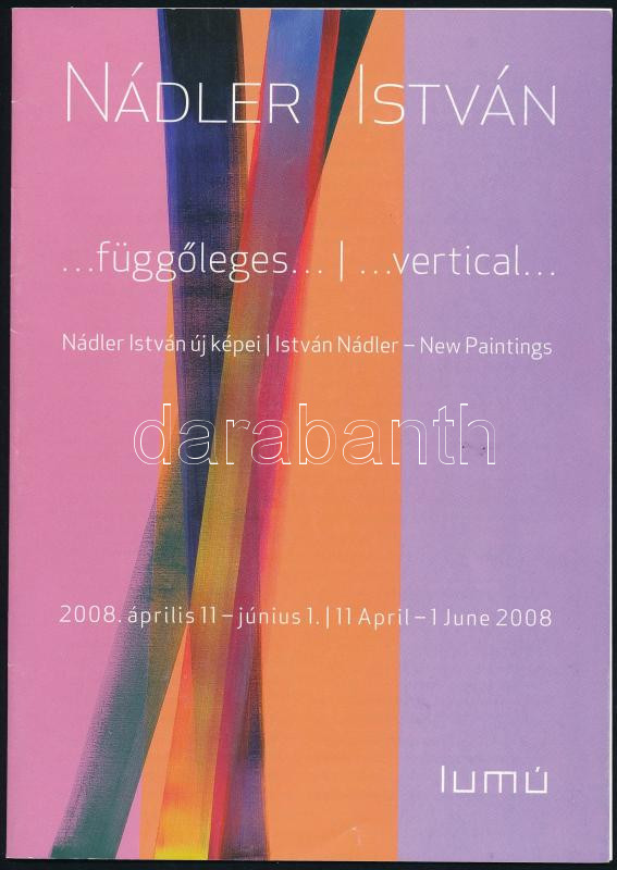 Nádler István... függőleges...Nádler István új képei. Ludwig Múzeum. 2008. április 11. - június 1. Bp., 2008, Ludwig Múzeum.12 sztl. oldal. Kiállítási prospektus, színes reprodukciókkal. Kiadói papírkötés.