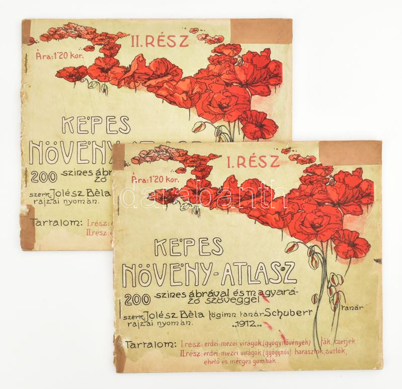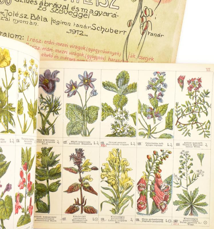 Képes növény atlasz 200 színes ábrával és magyarázó szöveggel Jólész Béla Shuberr rajzai nyomán 1912 kissé szakadozott papírborítóval