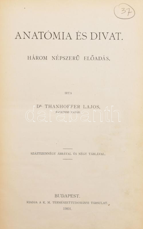 Dr. Thanhoffer Lajos: Anatómia és divat. Három népszerű előadás. Termé... https://www.darabanth.com/en/458-Online-auction/458.0/Books/Books-Natural-sciences-Medicine~1500023/Dr-Thanhoffer-Lajos-Anatomia-es-divat-Harom-nepszeru-eloadas-Termeszettudomanyi~II3065361