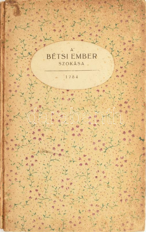 "A bétsi ember szokása.testestől lelkestől. KI-adatott fársángi tanításban, Pestenn, nyomtattatott Trattner' betűivel. 1784" Újranyomva 229 példányban, Aba könyvkiadó, 1921, sérült kiadói kartonált papírkötés.