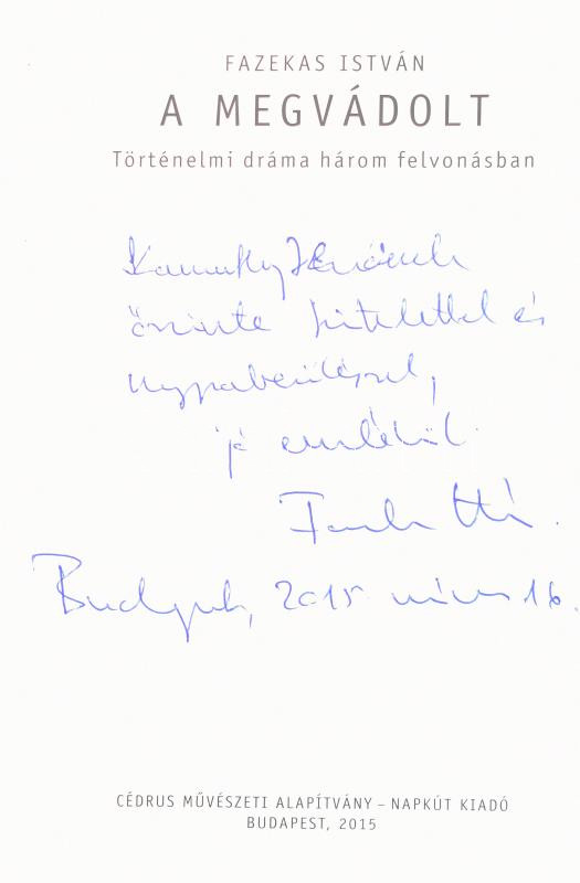 Fazekas István: A megvádolt. Történelmi dráma három felvonásban. (DEDI... https://www.darabanth.com/en/458-Online-auction/458.0/Books/Books-Other-rarities~1500034/Fazekas-Istvan-A-megvadolt-Tortenelmi-drama-harom-felvonasban-DEDIKALT-Bp-2015-Cedrus~II3066361