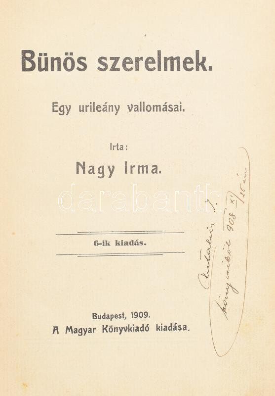 https://www.darabanth.com/en/458-Online-auction/458.0/Books/Books-Other-rarities~1500034/Nagy-Irma-Bunos-szerelmek-Egy-uri-leany-vallomasai-BP-1909-Magyar-Konyvkiado-Ujrakotott~II3068650