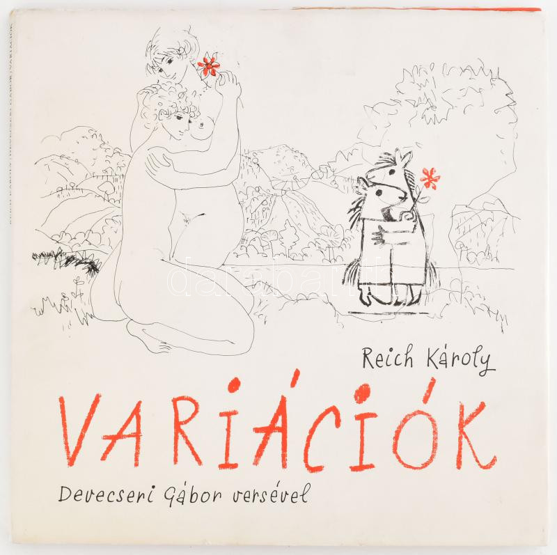 Description: Reich Károly: Variációk. A pamutszamár keservei, átváltozásai és végső boldogsága. Devecseri Gábor versével. (DEDIKÁLT). Bp., 1970, Magyar Helikon. Kiadói egészvászon-kötés, kiadói papír védőborítóban. Reich Károly (1922-1988) Kossuth-díjas grafikus által DEDIKÁLT példány.