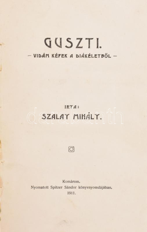 https://www.darabanth.com/en/458-Online-auction/458.0/Books/Books-Other-rarities~1500034/Szalay-Mihaly-Guszti-Vidam-kepek-a-diakeletbol-Komarom-Spitzer-Sandor-119-p-Atkotott~II3068535