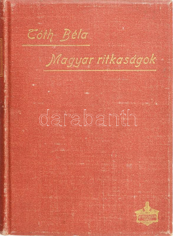 Tóth Béla: Magyar ritkaságok. Curiosa Hungarica. Képekkel és hasonmáso... https://www.darabanth.com/en/458-Online-auction/458.0/Books/Books-Other-rarities~1500034/Toth-Bela-Magyar-ritkasagok-Curiosa-Hungarica-Kepekkel-es-hasonmasokkal-Bp-1899-Athenaeum-~II3068554