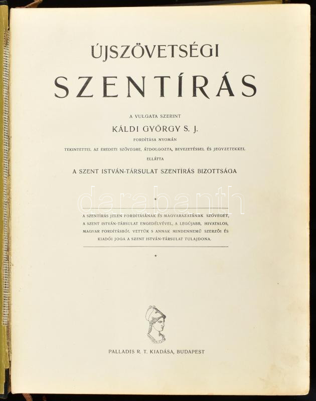 https://www.darabanth.com/en/458-Online-auction/458.0/Books/Books-Religion~2000091/Szent-Biblia-Ujszovetsegi-Szentiras-Kaldi-Gyorgy-SJ-forditasa-nyoman-Bp-1928-Palladis~II3035564