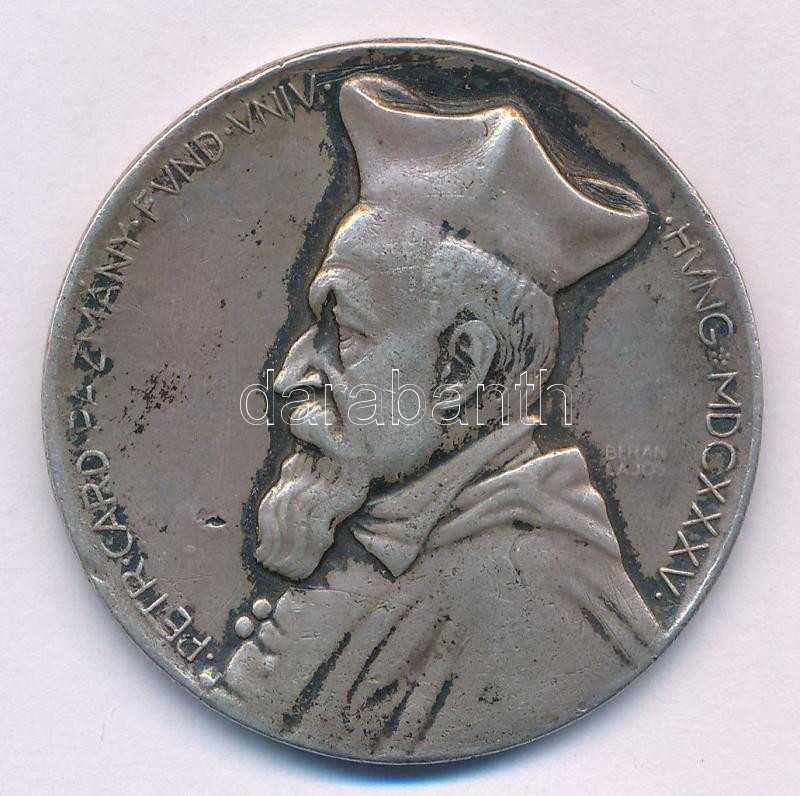 Berán Lajos (1882-1943) 1935. "A Pázmány Péter Tudományegyetem alapításának 300. évfordulója" jelzett Ag emlékérem "PETER CARD PÁZMÁNY FVND VNIV HVNG MDCXXXV / SENATVS VNIVERSITATIS" (26,37g/0.800/39mm) T:XF,VF patina, ph, karc
