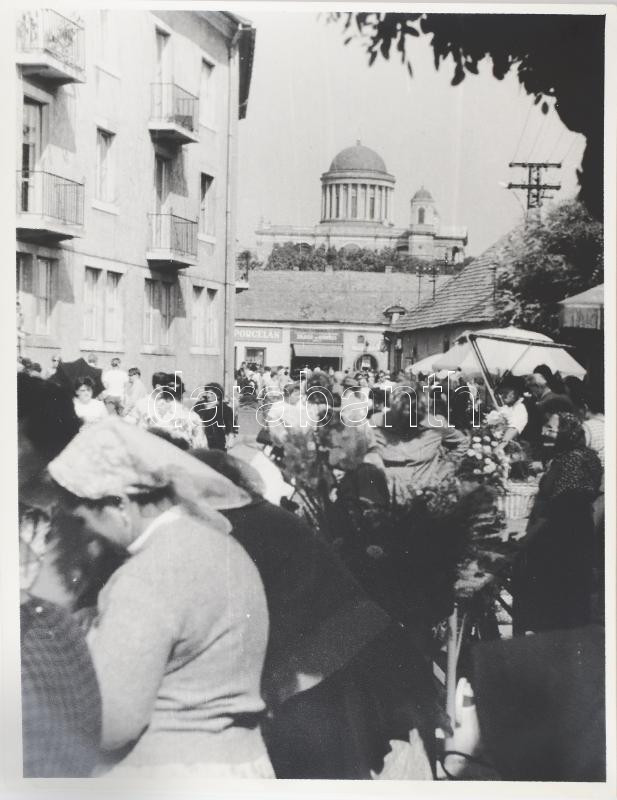 Az esztergomi piac, háttérben a bazilikával, nagy méretű fotón. 18x24 ...