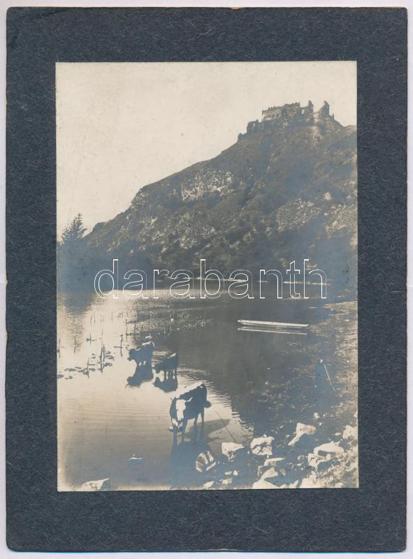 cca 1906 Solymos (Erdély) várromja a Maros mentén legelésző tehenekkel... https://www.darabanth.com/en/458-Online-auction/458.0/Photography/Photo~1000024/cca-1906-Solymos-Erdely-varromja-a-Maros-menten-legeleszo-tehenekkel-kartonra-ragasztott-foto-~II3067465