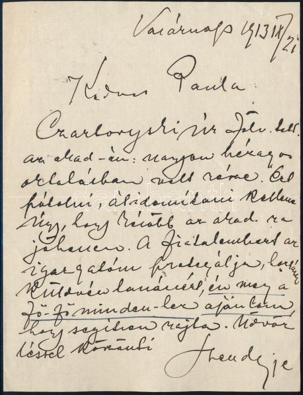 1913 Szendy Árpád (1863-1922) zongoraművész és - tanár, zeneszerző ált... https://www.darabanth.com/en/459-Online-auction/459.0/Art-and-other-collectibles/Historical-documents-manuscripts~1000021/1913-Szendy-Arpad-1863-1922-zongoramuvesz-es-tanar-zeneszerzo-altal-sajat-kezuleg-ir~II2970160