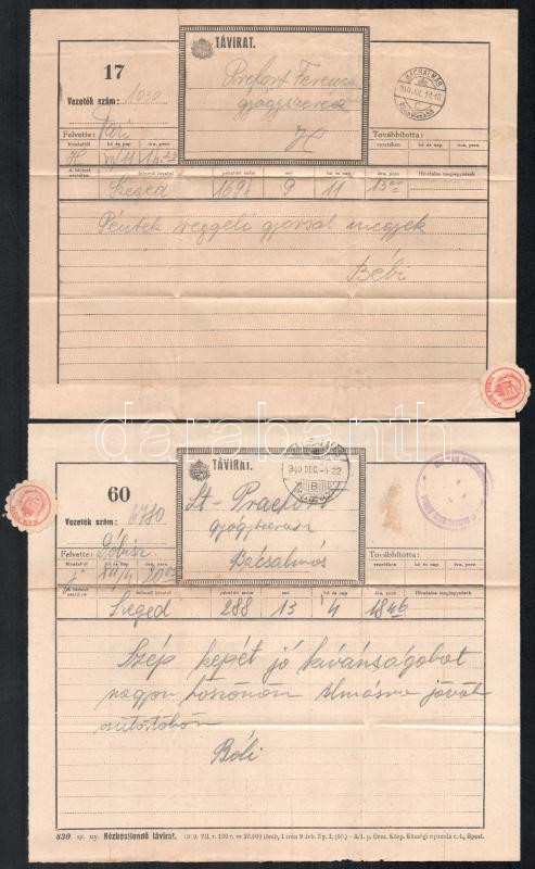 Description: 1941 Bp., a Szent Lukács Gyógyfürdő és Gyógyszálló fejléces papírjára írt, személyes hangvételű levél, Praefort Ferenc (1905-1994) bácsalmási gyógyszerész részére, 4 beírt oldal, borítékkal + 2 db Praefort Ferencnek küldött távirat