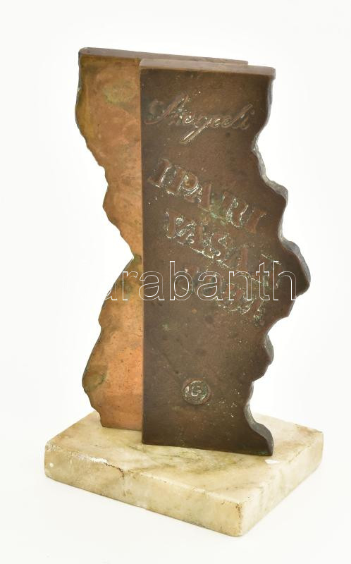 Lapis András (1942-) Ipari vásár díj 1984. Bronz, márvány talapzaton, jelzett, 20 cm