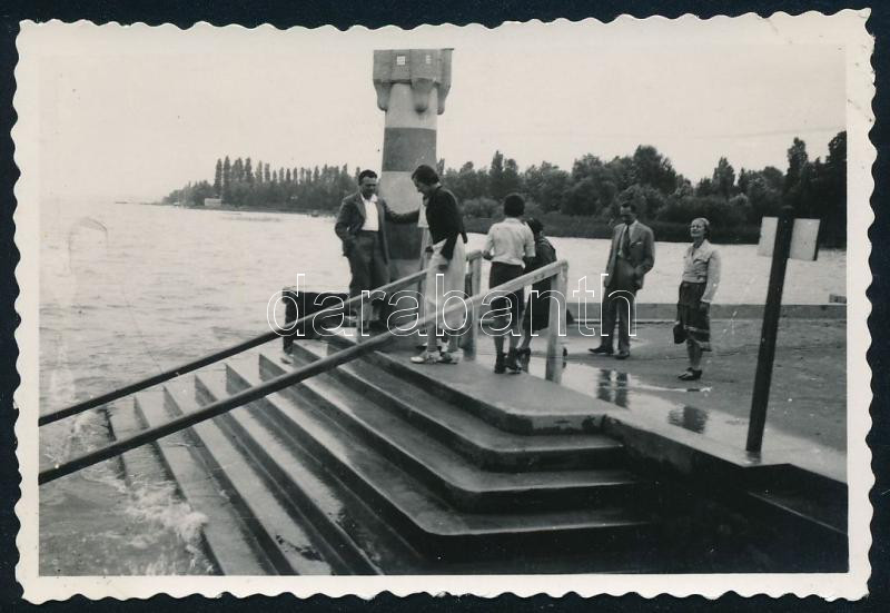 1936 Balatonszárszó, a móló vége, lejárat a vízbe, fotó hátoldalt felirattal, 5,5×8,5 cm