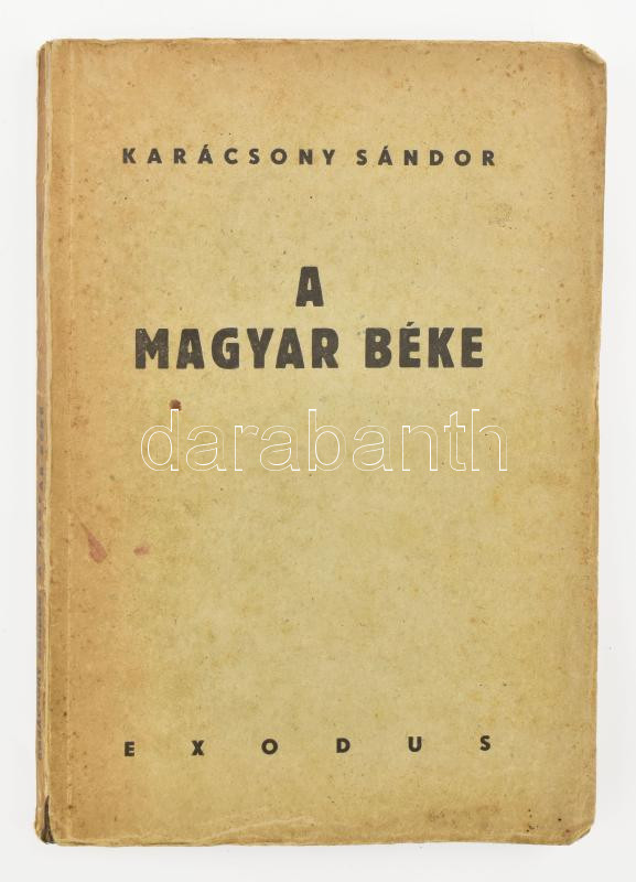 Karácsony Sándor: A magyar béke. Háborúból békére (reformra) nevelés. ... https://www.darabanth.com/en/459-Online-auction/459.0/Books/Books-History~2000020/Karacsony-Sandor-A-magyar-beke-Haborubol-bekere-reformra-neveles-Bp-1947-Exodus-Hollosy~II3073101