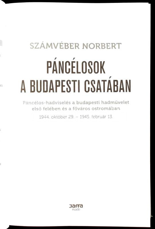 Description: Számvéber Norbert: Páncélosok a budapesti csatában - 1944. október 29.- 1945. február 13.. Bp, 2018, Jaffa. Második bővített kiadás. Kiadói kartonált papírkötésben.