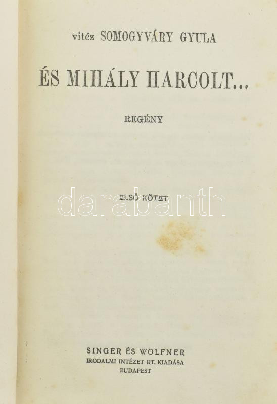 vitéz Somogyváry Gyula: És Mihály harcolt 1-2. Regény. Bp., 1940, Sing...