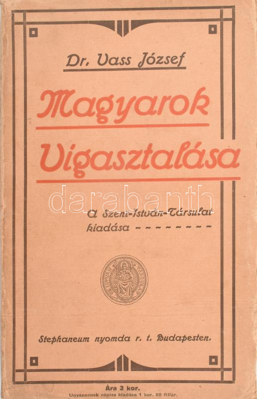 Dr. Vass József: Magyarok vigasztalása. Bp., 1916, Szent István-Társul... https://www.darabanth.com/en/459-Online-auction/459.0/Books/Books-Other-rarities~2000015/Dr-Vass-Jozsef-Magyarok-vigasztalasa-Bp-1916-Szent-Istvan-Tarsulat-336-p-Egyetlen-kiadas~II3072555