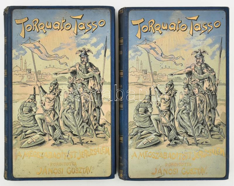 Tasso, Torquato: A megszabadÃtott Jeruzsálem. I-II. köt. Ford.: Jánosi Gusztáv. Bp., 1893, Szent-István-Társulat,(Franklin-ny.), 1 t. +XXV+7+326 p.;331 p. Kiadói aranyozott, festett, illusztrált egészvászon-kötés, Gottermayer-kötés, aranyozott lapélekkel, kis kopással a gerincen, jó példány.