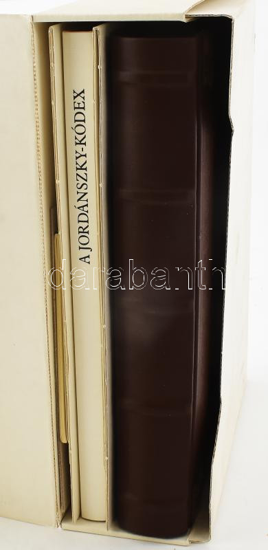 A Jordánszky-kódex. Magyar nyelvű bibliafordítás a XVI. század elejéről [1516-1519]. Az Esztergomi Főszékesegyházi Könyvtárban őrzött, 1516-1519 között készült MSS. II. 1 jelzetű kódex hasonmása, illetve szövegének olvasata. (Hasonmás és tanulmánykötet, két kísérőfüzettel). Bp., 1984, Helikon. Kiadói bordázott gerincű, kapcsos, fémveretekkel díszített egészbőr-kötés, illetve kiadói kartonált papírkötés, kiadói papír védőborítóban. Jó állapotban, kiadói kartontokban.