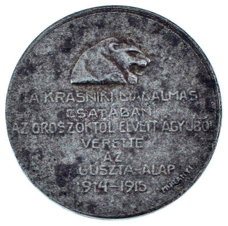Description: Osztrák-Magyar Monarchia 1915. "A Krasniki diadalmas csatában az oroszoktól elvett ágyúból verette az Auguszta-Alap" Fe emlékérem. Szign.: Murányi Gyula (22mm) T:XF oxidáció