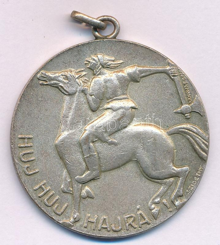 Szigethy István (1891-1966) 1937. "Huj huj hajrá! / Zrínyi Kupa 1937 Cs. II." ezüstözött bronz díjérem "ARKANZAS BPEST" gyártói jelzéssel, füllel (40mm) T:AU,XF kopott ezüstözés, kis ü.