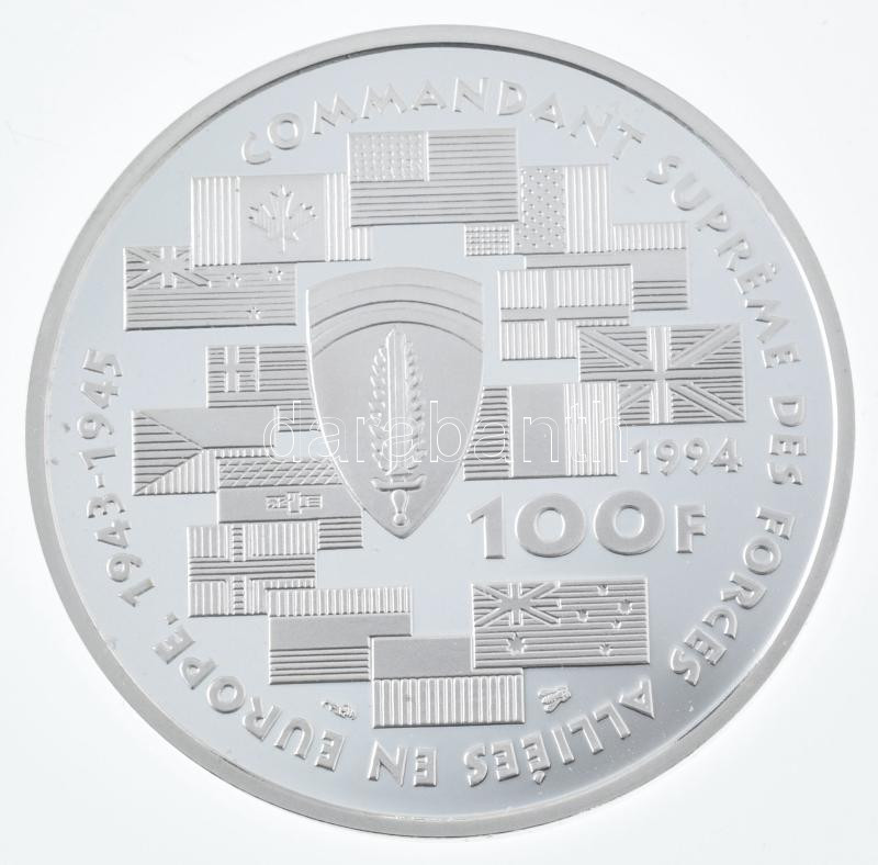 Description: Franciaország 1994. 100Fr Ag "Dwight David Eisenhower" dísztokban, tanúsítvánnyal T:PP