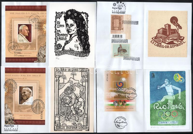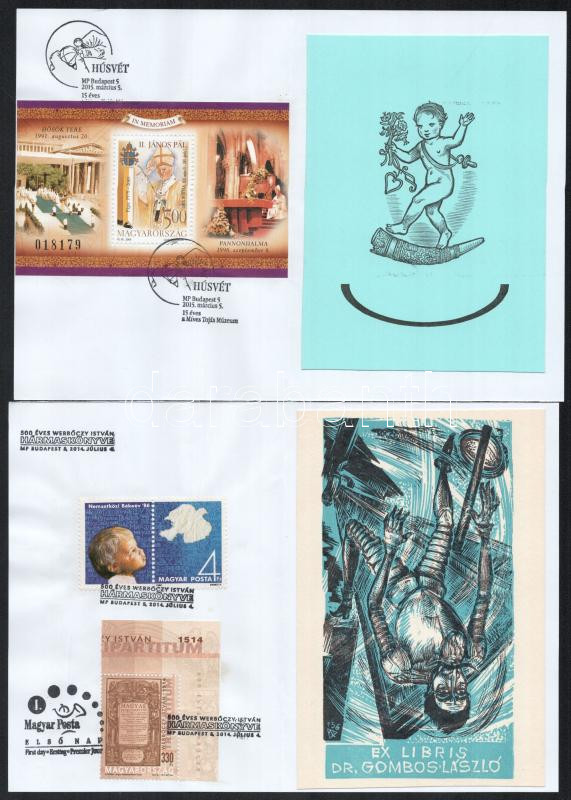 II. János Pál pápa, vallás 6 db halmozott grafika: ex libris, bélyeg, ...