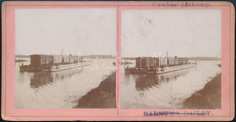 1901 Gombosi gőzkomp, sztereófotó, Krémer Dezső felvétele, pecséttel j...