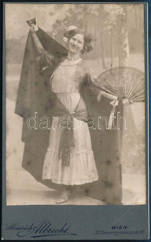 1912 Bécs, Heinrich Albrecht fényképész műtermében készült, keményhátú vintage fotó, kézírással datált, Jankát ábrázolja, 16,1x10 cm