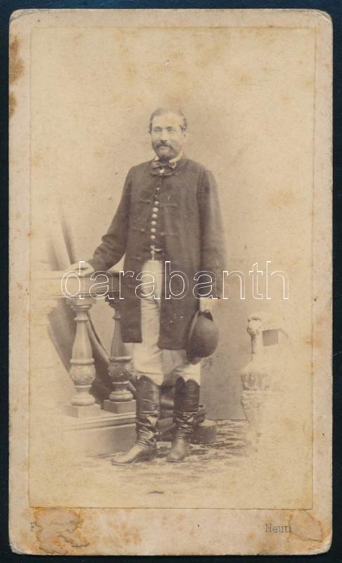 cca 1860-1870 Somorjai Lelkes (Leölkes) család férfitagjának egészalakos portréja, vizitkártya Jeanot Ferencz nyitrai műterméből, foltos, 10,5x6 cm