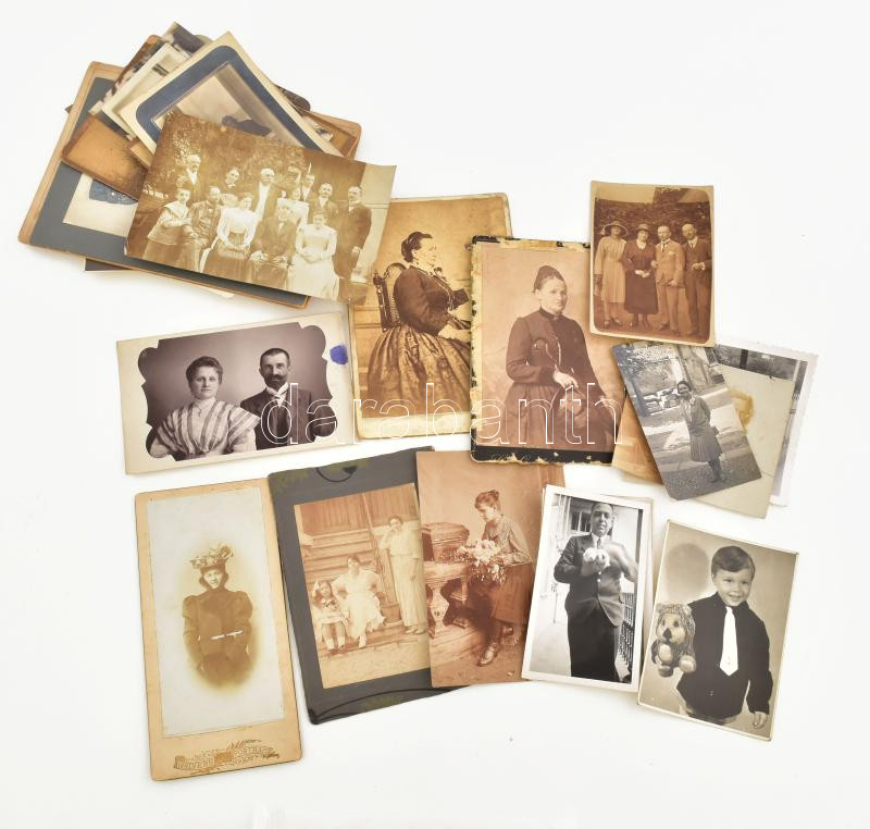 cca 1890-1940 vegyes fotó tétel, életképek, portrék, csoportképek, épületek, utcarészletek, lányok népviseletben stb., össz. kb. 55 db, közte néhány keményhátú, részben jelzett, többségében magyar vonatkozású, részben sérült