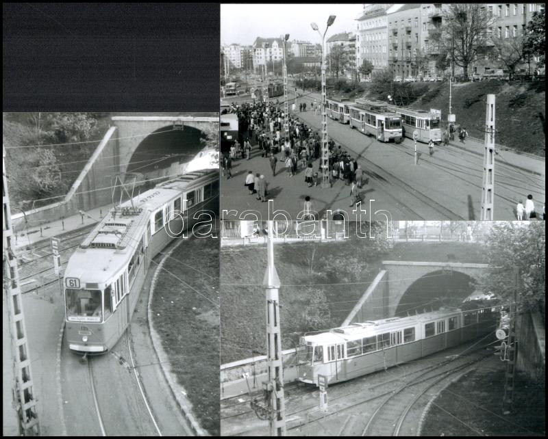 cca 1970-1980 Budapest, villamosok a Moszkva téren, 3 db fotó, későbbi nagyítás, 10×15 cm