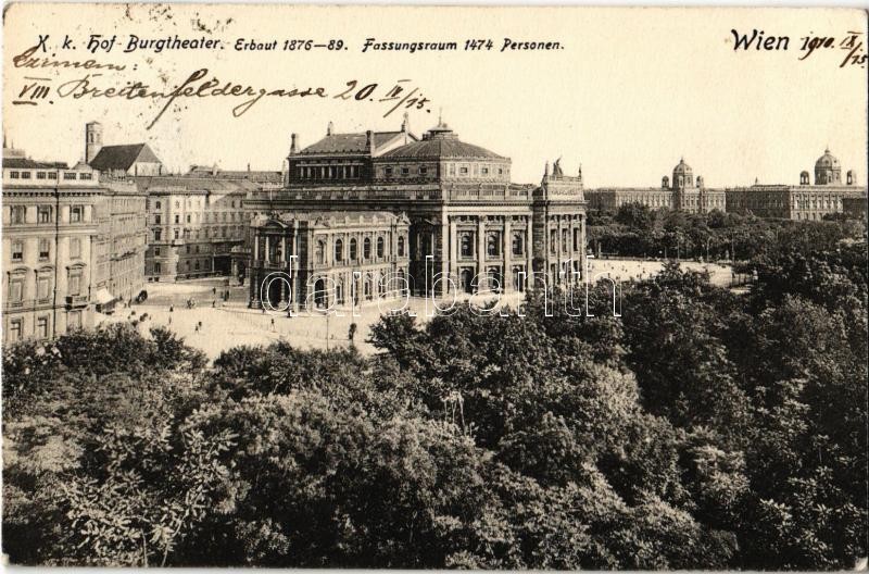 1910 Vienna, Wien, Bécs I. K. k. Hof-Burgtheater / theatre