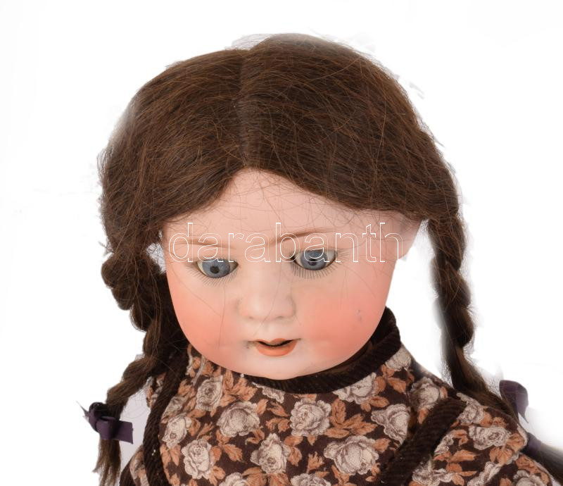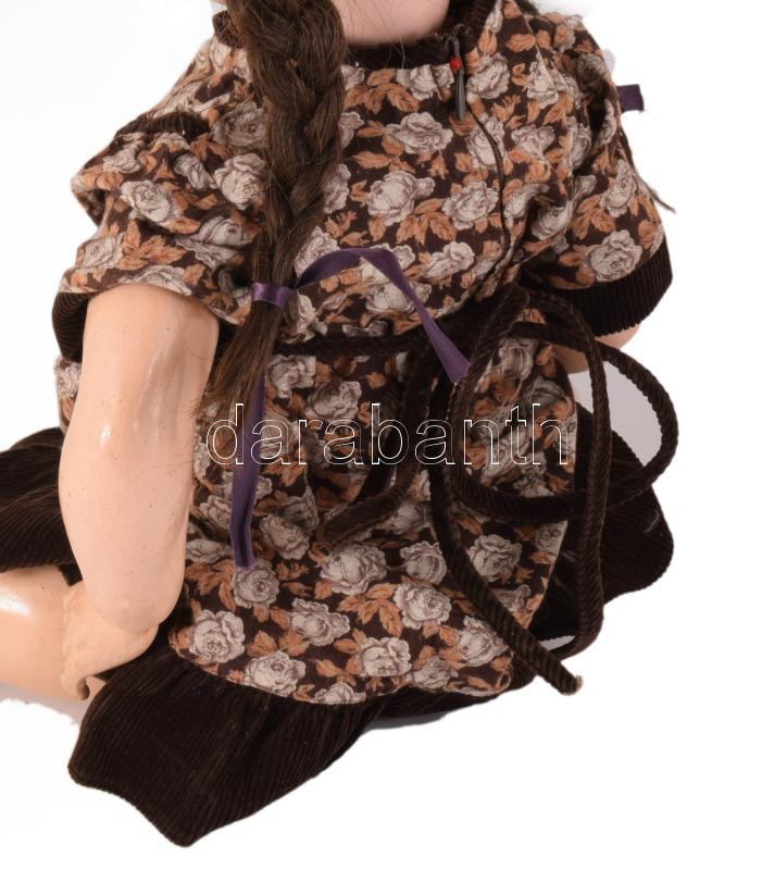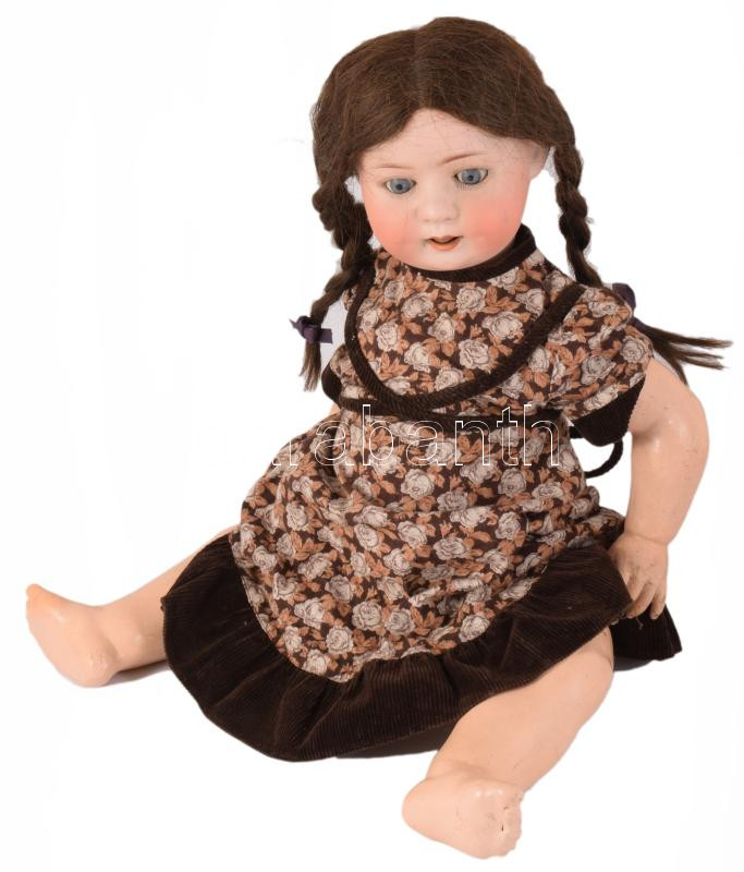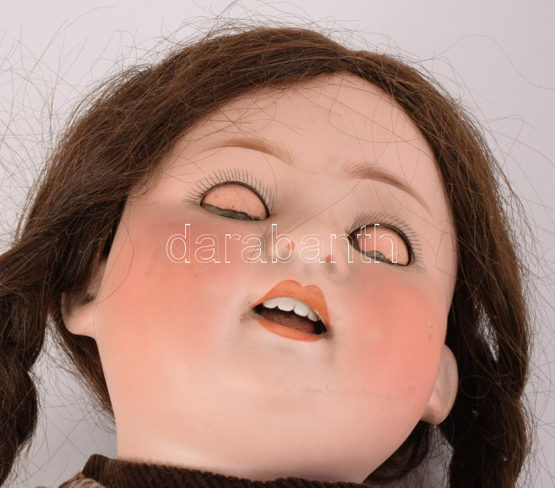 cca 1920-1950 Heubach Köppelsdorf játékbaba. Papírmasé, porcelán, igazi haj, nyelve van, combjánál sérüléssel, m: 58 cm /// Approx. 1920-1950 Heubach Köppelsdorf doll. Made of papier-mâché and porcelain, with real hair and a tongue; damage at the thigh; height: 58 cm.