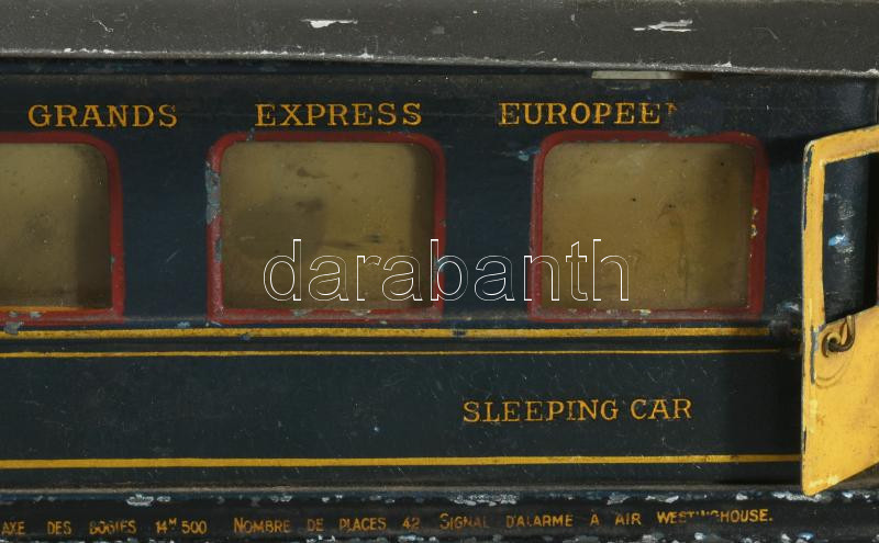 cca 1930 Marklin Sleeping Car alvókocsi, korának megfelelő állapotban, h: 42 cm /// c. 1930 Märklin Sleeping Car, in condition consistent with age, height: 42 cm