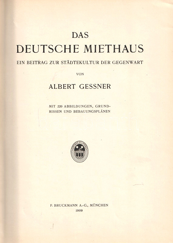 Gessner, Albert: Das Deutsche Miethaus. Ein Beitrag zur Städtekultur der Gegenwart. Mit 220 Abbildungen, Grundrissen und Bebauungsplänen.